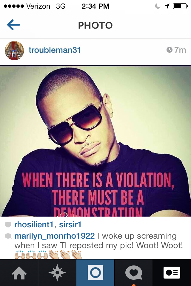 What I didn’t expect was for T.I. to ever see the picture or repost it. When I saw he did, because I do follow him on Instagram (@troubleman31), I was very excited and even reposted that he had done so (see below).