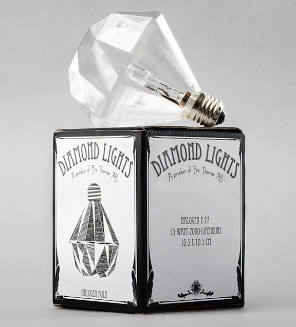 So I was doing a stroll through the BBC Ice Cream blog (which I haven’t done in awhile) and stumbled upon this post about the Diamond Lights lightbulb which was designed by Eric Therner. You can order the lightbulbs here for $29 bucks: http://erictherner.yokaboo.com.